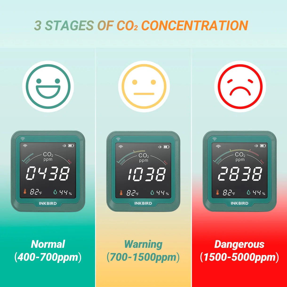 - Real-time alerts: set a CO2 threshold and get notified when it exceeds your preset value.