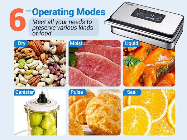 Modes: Vac & Seal, Seal Only, Pulse, Canister