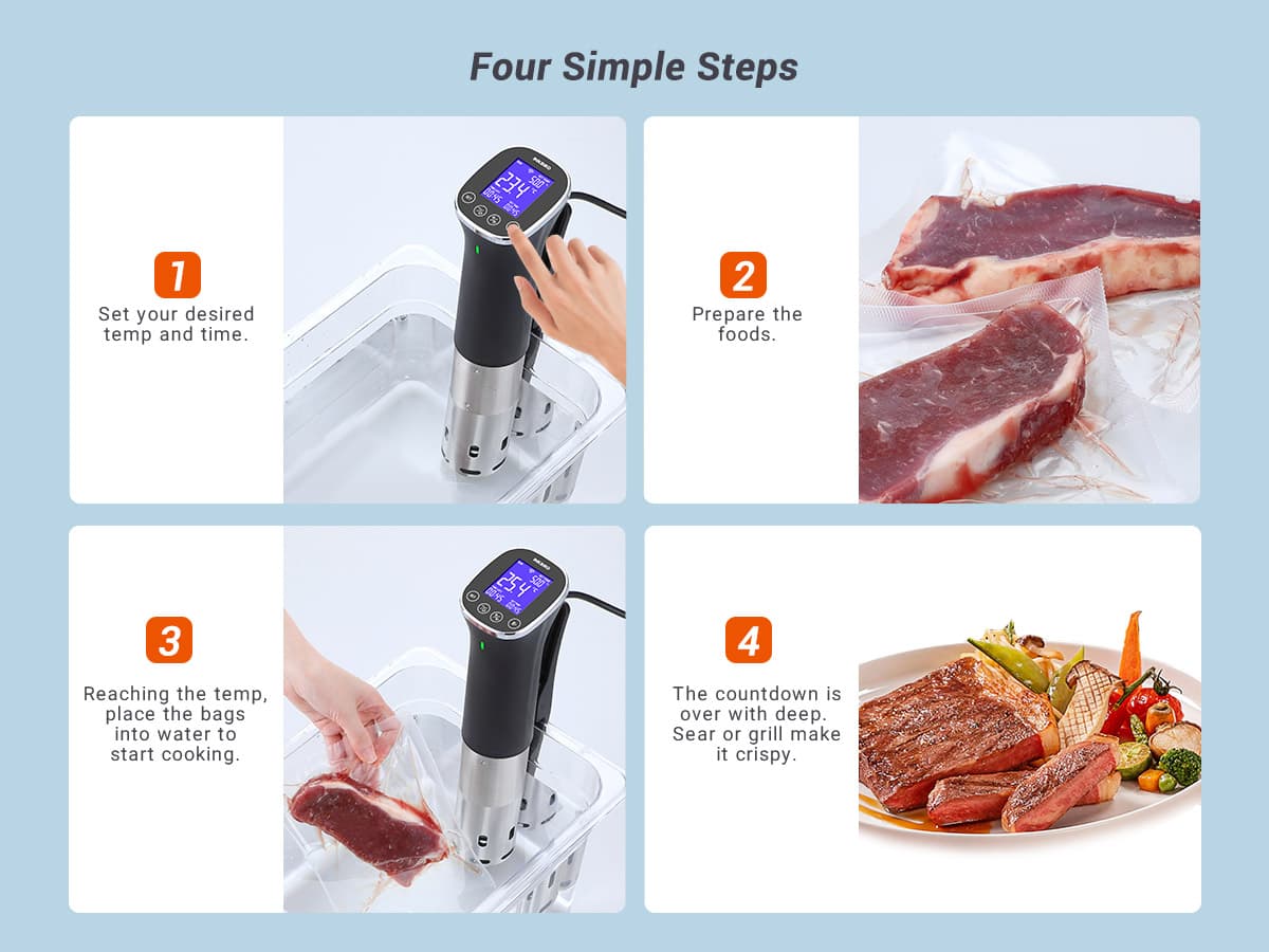 Combine the Sous Vide with the Otiv Vacuum Sealer and Smart Meat Thermometer for a fully automated, stress-free cooking experience.